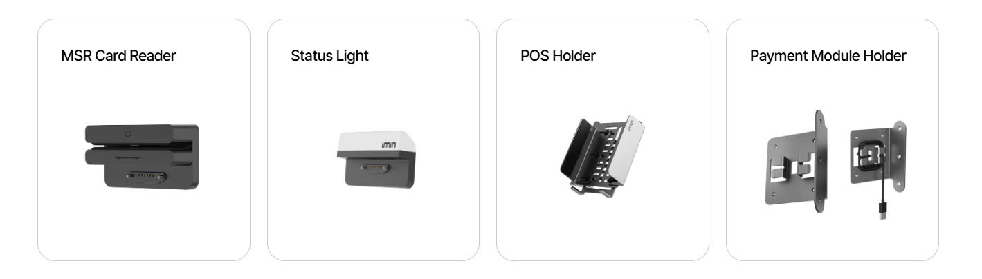 | Volitelné příslušenství | Čtečka karet MSR Stavová kontrolka POS držák Držák platebního modulu |